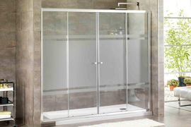 Se hacen en cristal templado de seguridad, pueden ser batientes en 6mm y corredizas en 8mm, instalado con sus respectivos accesorios cromados o acero inoxidable.